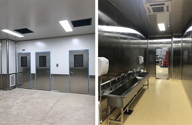 正是安徽綠帝食品有限公司這樣的企業(yè)情懷,遇到了同樣也是以企業(yè)社會(huì)責(zé)任感為公司企業(yè)文化的無錫易純凈化設(shè)備有限公司。兩家的深入交流、溝通后,建立了深深的好感和信任!由于安徽綠帝食品有限公司主要生產(chǎn)加工肉制品,無錫易純凈化設(shè)備有限公司為安徽綠帝食品有限公司打造的十萬等級(jí)凈化車間主體結(jié)構(gòu)為不銹鋼材質(zhì),因?yàn)槿庵破飞a(chǎn)企業(yè)車間內(nèi)濕度過大,空氣中有鹽分,容易腐蝕普通的彩鋼板,并且使用壽命有限,更容易滋生細(xì)菌,不好維護(hù)保養(yǎng),所以易純凈化采用了304不銹鋼潔凈板材做吊頂和隔斷,更易維護(hù),使用壽命更久,更符合安徽綠帝食品有限公司的生產(chǎn)工藝。
