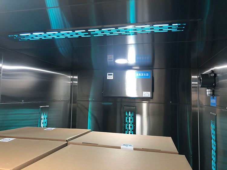 工作原理介紹:檔案消毒室采用全不銹鋼材質(zhì)制作,進(jìn)門為雙開手動開門,操作人員打開雙門后將托盤送入到消毒室內(nèi),人員退出后關(guān)閉雙門,當(dāng)門關(guān)閉后,消毒室開始啟動臭氧發(fā)生器和紫外線同步工作,此時(shí)門鎖閉,工作報(bào)警指示燈顯示為紅色狀態(tài),門無法打開。觸摸屏實(shí)時(shí)顯示臭氧濃度,當(dāng)達(dá)到設(shè)定的濃度及設(shè)定的消毒時(shí)間后,臭氧和紫外線燈自動停止工作,內(nèi)部臭氧開始啟動降解模式,當(dāng)臭氧濃度降解到安全值以下,報(bào)警指示燈顯示為綠色,門為可打狀態(tài)。人員取出托盤,將之送入到庫房內(nèi)進(jìn)行保存。
