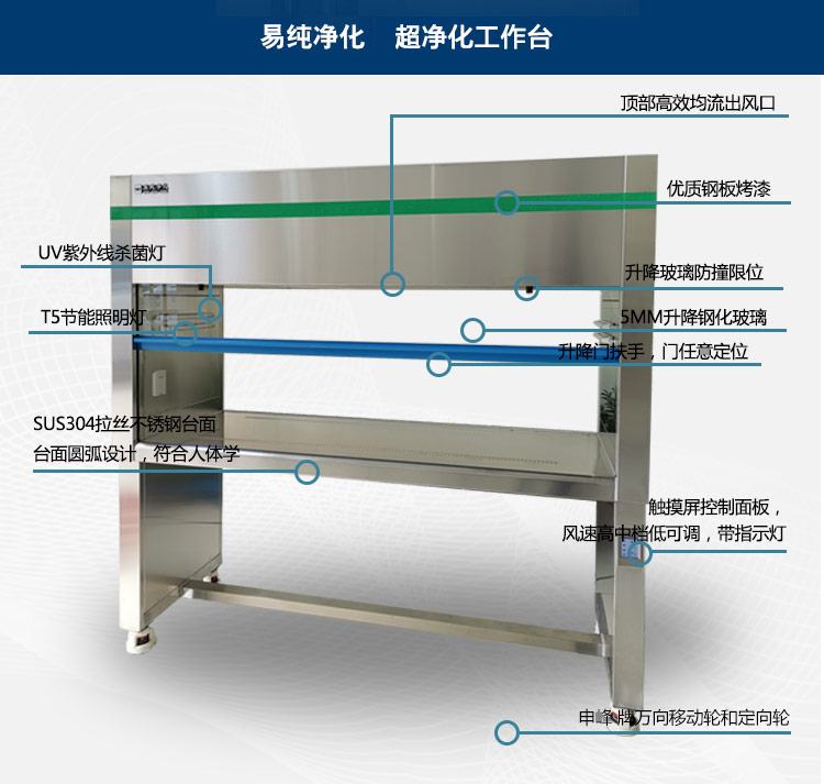 18.電器控制:控制面板上有紫外線殺菌燈,照燈,風(fēng)機(jī)調(diào)速控制軟觸點開關(guān);