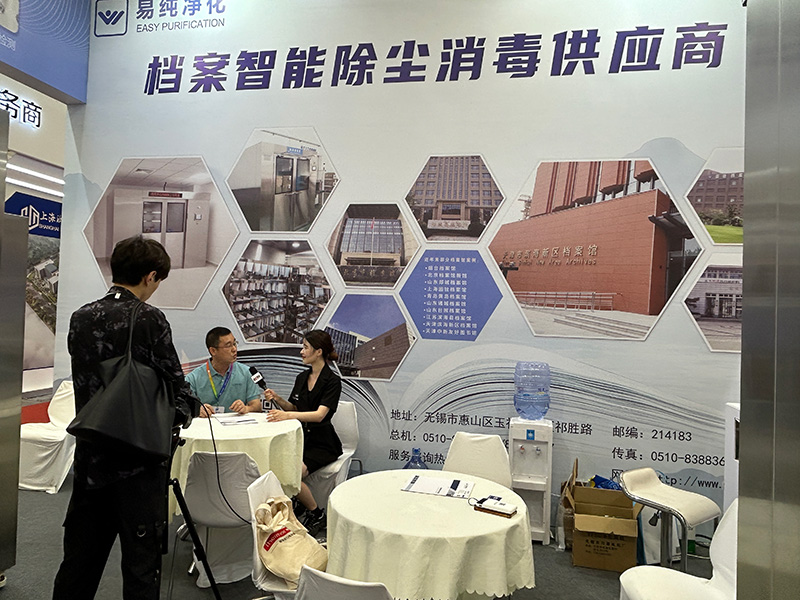 易純凈化連續(xù)兩年參加智慧檔案展覽會展出,現(xiàn)場展出的檔案除塵室,檔案除塵柜,自動感應門風淋室,檔案消毒室受到了廣大檔案行業(yè)人員的高度認可和興趣,在現(xiàn)場大家熱情參觀,討論行業(yè)趨勢,設備改進以及未來檔案行業(yè)除塵消毒的新技術、新趨勢,共同展望未來。在檔案展會期間公司領導層接受了CCTV央視媒體采訪,充分認可公司在檔案除塵設備行業(yè)的發(fā)展及付出,也祝愿公司在未來可以取得更加良好的發(fā)展。