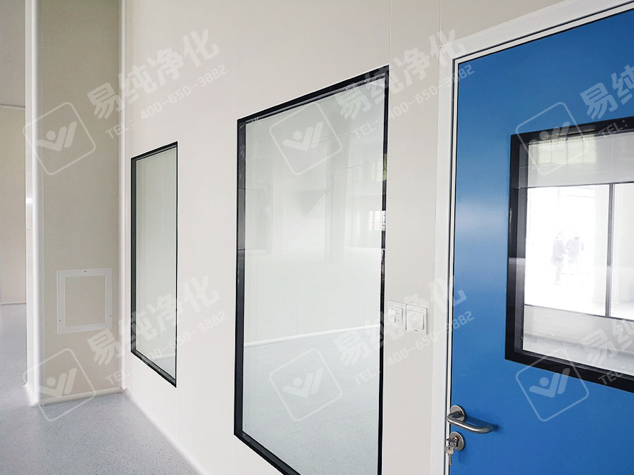 潔凈門使用成品凈化鋼質(zhì)門,凈化窗采用成品雙層真空鋼化玻璃窗,安裝均和墻體齊平,整體看可稱之為高大上了